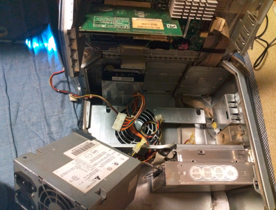 管理者様から依頼があったもう一台のMDDG4ですが、スイッチを入れて通電するものの起動してこない。といった症状でした。いろいろと調べてテストしてみたところ、マザーボードCPUに問題はなし。どうやらロジックボードに問題があったようです。別の作動するものに交換しました。その結果、起動するようになり修理完了。いいのかな、こんないい品物。管理者様からお礼の言葉をいただきました。ほんとにほんとに大事に使わせて頂きますとのことです。m(_