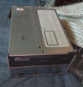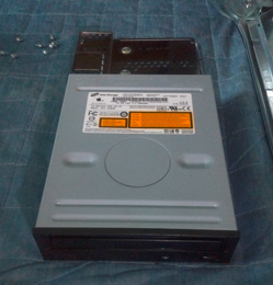 ユニット固定用カバーから内臓ディスクドライブを取り外し。純正ドライブ?を取り出したところ(写真下)。