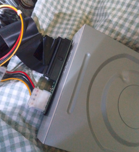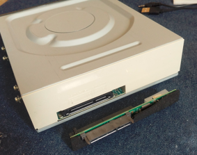 当時モノのDVDドライブ入手しました。IDE対応確認。接続は楽になります。動作確認したところ、CDの読み込みはできるのですがDVDの読み込みができない。加えてディスクマウントホルダーのサイズが大きいこともわかり、この機種はNG。結局、MDDG4への内臓DVDドライブ交換は一旦保留に。代わりにグラファイトG4から取り出したCDドライブをMDDG4に取り付けることにしました。当時モノのDVDドライブはまたどこかで活かせると思います。