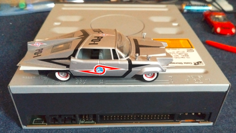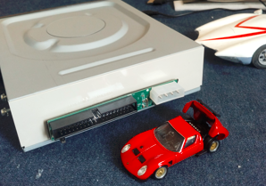 うまくつながって、動作確認もOK。DVD再生、ディスクIN-OUT動作も問題ありません。さあ、取り付け。ところが、アレレ、出口が小さくてディスクIN-OUTできない。アチャー、やっちまったかあ。ということでMDDG4で新しいディスクドライブ、この機種ではフレームサイズの問題があり無理だとわかりました(写真下)。