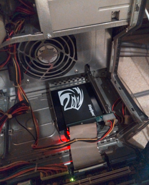 このあと、2台HDDが搭載されていたデータ・電源サプライ端子の1台分が残っているので。これを活用して、データストーリッジ用のハードディスクを取り付けてもいいかもしれません。手持ちの適当なものから選んでパワーアップを図ろうと思います。very