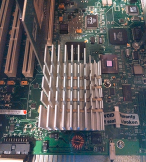 非常に興味深い。これはアルミ製で底辺のアルミボードに板状のアルミがスリット状に縦に並べられ。同サイズの大きな板が6枚。その横に高さを変えて段差がついて4枚並べてある。さらに一枚ずつ水平方向に4列のスリットが入っている。なぜこのような構造をしているのかと言えば。CPUから吸収した熱を合理的に放散する仕組みになっているわけだ。アルミニウムは軽量で加工がしやすく熱伝導率が高い。そういうわけで、グラファイトG4は当時としては非常によくできたCPUクーラーを備えていて。これはグラファイトG4の耐久性をテストしていて分かったことなのだが。CPUクーラーは現代的にはバリエーションが豊富なのでコンピューターの再構成を考えているなら、ここは検討に値する。