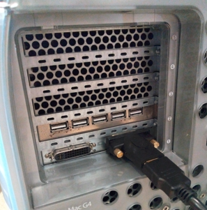 この power mac G4 は通称 ”グラファイト” と呼ばれる第1世代の G4 のようです。その為、モニターの接続端子も古いタイプで、システムを組むのに少し手間がかかりますが、まだまだ現役で使えそうです。じつは、後期型の