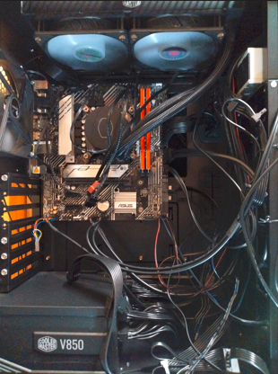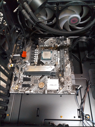 CPUはそのまま継続流用、IntelCorei9 第10世代です。CPUも2026年現在、第14世代が普及しているのでout of dateも否めませんが、普通の作業をさせる分には十分で。マザーボードも廉価版ですがかなりのパフォーマンスのようです。というわけで、CPUマウントし、水冷式CPUクーラーもそのまま流用、取り付け作業を完了しました。