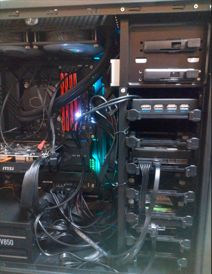 CPUクーラーは水冷式を使っていますが。今回仮作業を終えた段階で、BIOSでコンディションを確認したところ、CPUモニターで警告表示があり、を確認。”ヤバい”、どうやら配線を間違えたようで、CPUクーラーのパワーサプライ端子が間違って接続され、クーラーが機能していなかったという事象がありました。改めてチェック、配線の間違いを確認して修正。その後は30℃前後で安定コントロール。コワいですね。逆に言えば、水冷式CPUクーラーってものすごくよく効いているってことでもありますね。気を付けましょう。